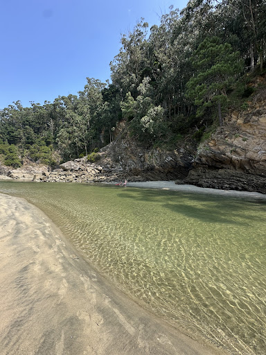 Read morePlaya de arena fina y aguas muy limpias,es muy llana tienes que meterte mucho en el agua para que te cubra, o con la marea baja caminar un buen rato,zona de baño central ya que en los laterales aboca a dos rías y es peligroso el baño,pero es lo suficiente amplia,tiene duchas y baños(este año cerrados)no tiene socorrista,el párking es pequeño y casi siempre hay campers o caravanas,difícil de aparcar!!Del párking a la playa hay que caminar 400 o 500 mts!! Lo que menos me gusta es que los que llevan perros los suelten por el medio de los niños y pudiendo llegar a crear un conflicto con los perros que...