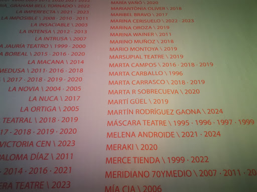 Read moreSala de referencia en el panorama Valenciano, con más de 30 años de programación cuidada, variada y de gran calidad. Profesionales del sector que llevan años ofreciendo apoyo a todo tipo de agrupaciones y profesionales del mundo teatral desde sus inicios (algo fundamental y muy poco frecuente). Es un espacio abierto a todo tipo de proyectos creativos, principalmente y fundamentalmente del ámbito teatral pero también de la poesía, la fotografía, el collage, la pintura, etc. La sala, el equipo y el contenido son excepcionales. Te sientes entre amigos, en casa... Sin duda, "la sala de Valencia". Les deseo muchos más éxitos, merecidos premios y ayudas a su esfuerzo, calidad y aporte a la cultura...