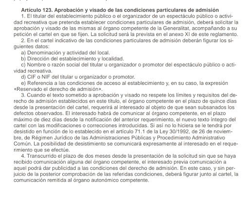 Hasta aquí todo bien. Dicho derecho dice que los establecimientos pueden decidir que condiciones particulares aplicar para dejar entrar o no a alguien en sus establecimientos.