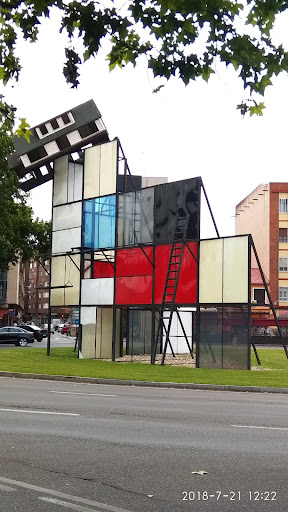 En la rotonda donde se unen Paseo de Zorrilla, la rubia y camino viejo de Simancas, se encuentra este monumento al cine, la escultura hace referencia a la cemici, qué es la Semana Internacional de Cine en Valladolid. Consiste en una casa invertida sostenida sobre cubos de colores, simulando un...
