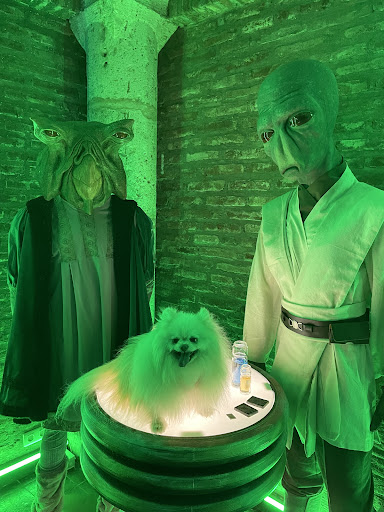 Read moreEspectacular! Habíamos visto publicidad de este sitio en facebook y me pareció un plan estupendo. Es verdad que la gente dice que se ve en una hora, pero yo dí dos vueltas completas al recorrido! Todo está fantásticamente ambientado, la calidad de las reproducciones es máxima, los decorados, la iluminación, el ambiente... Es verdad que hace algo de calor en la parte exterior, pero es llevable. Por otro lado el trato de los chicos de la recepción es educado y profesional. Viajamos con tres perrillos pequeños y me dejaron pasar con ellos sin ningún inconveniente. En nuestro caso llegamos sobre las 12:00 de un domingo y había gente, pero no estaba masificado. Sobre las 13:00 se había marchado todo el mundo y decidimos dar otra vuelta a toda la exposición a nuestro aire, que pasada, porque puedes aprovechar para verlo todo más detenidamente, fijarte en los detalles y hacerte fotos con todo lo que quieras. Por poner un pero... quitad a E.T. de la cantina, que no pega ni con cola, jeje. Muchas gracias por una idea tan estupenda. Ojalá estuviérais más cerca para poder llevar a amigos y familiares. No obstante os...