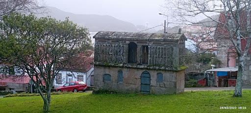Diseñado x el Arquitecto R. Bofill, utilizando la Suave Ladera d una Loma hacia la Ría. Amplias Vistas s/Ría, Astilleros, Rande y Península dl Morrazo. Extensa Zona d "VerdeGalicia" (yerba/hierba) Pisable, Sentable, Pastable (utilizable, vamos) Pequeño Anfiteatro Circular, en Nivel Inferior ¡Unha Ledicia si fai...