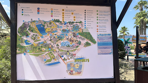 Read moreSpent a great day here a few days ago on our second visit to the Costa Daurada area. We were two adults and two kids aged 6 and 9. Last year we chose the other water park (Caribe) in the area as having looked at the websites realised our youngest (then 5) was 1.2m and able to go on all bar 2 slides in Aquapolis. We had a really great day arriving shortly after opening and stayed until close. Didn't realise you had to pay for sunloungers (as per other reviews) so ended up having three for free for the day unintentionally. The slides were fantastic and queues generally not too bad. Last hour of the day was like 'golden hour' as many had left the park. We brought our own snacks and water and just bought some frozen yoghurt. Prices for standard 'fast food' options didn't look extortionate. Then again we're from Ireland so everything in Spain looks great value to us! We've been to many waterparks (the adults!) including Disney, Universal, 6 flags etc. which in our opinion although more manicured and themed don't offer the same amount of great quality slides. As far as they weight limits go yes most slides are 90kg max which is stated on the website. I can totally see why from a safety perspective. One slide had a 60kg limit, I weigh 58kg so went on it and seriously had the fear of coming out over the edge 😂. Didn't risk a second go on that one! Scales are provided at the entrance to queuing area as well as signage so no need for people to queue and then argue with the teen lifeguard at the top. In summary if you love fast, fun water slides, weigh under 90kg and measure 120cm + this park is for you. Check the weather forecast, book online, arrive early, bring your own snacks, expect some queues and enjoy. And I guess pay for a...