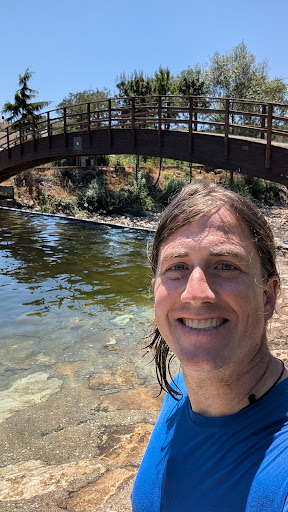 No hubo mayor problema porque unos metros más arriba, hay unas pequeñas pozas en las que los peludos pueden bañarse, pero sin acceso a la zona de césped claro, que es la mejor parte de esta playa fluvial.