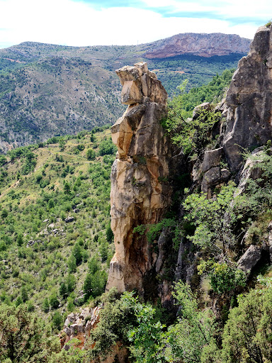 Mirador de Valloré (Bajada). La Ruta al Mirador de Valloré es circular, y se puede realizar en ambos sentidos, por lo que señalar una vía como de subida o bajada, no deja de ser caprichoso. No obstante hay que tener en cuenta que si vamos a regresar a Montoro de Mezquita por las Pasarelas, nos vamos a encontrar de frente con personas que están haciendo la Ruta de las Pasarelas...y va a ser muy incómodo, así es que yo recomiendo hacer primero la Ruta de las Pasarelas, subir a continuación al Mirador de Vallaré, y regresar a Montoro de Mezquita por la vía directa que baja desde el Mirador. Destacar que ninguna de las vías es complicada (vertiginosa, tal vez)...aunque yo las desaconsejaría totalmente para niños (para los principiantes, siempre y cuando no sean propensos a los ataques de pánico, no...