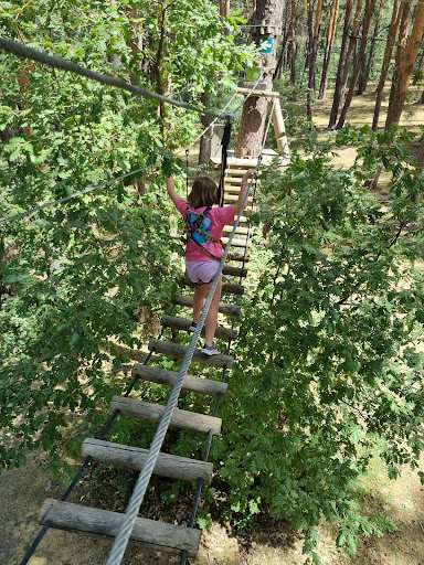 Una actividad de 10 para una mañana divertísima! Hemos hecho 3 circuitos: inicial, verde y azul, de dificultad progresiva entre ellos con lo que ganas confianza a medida que avanzas. Ideales para adultos con poca experiencia y para niños a partir de 10 años. En nuestro caso la niña de 10 años necesitaba ayuda de un adulto en el circuito azul. Nos ha sorprendido gratamente la seguridad que ofrecen las actividades. Las monitoras y el monitor han sido muy atentos, explicando todo muy bien. Nos iban acompañando desde bajo por todo el recorrido, aunque es cierto que no había mucha gente en ese momento. En el horario de 11 a 14 hemos podido repetir varias veces cualquiera de los circuitos, nos ha dado tiempo para un total de 4. Por poner alguna pega decir que desde fuera la caseta que da entrada al pinar se ve algo desvencijada, si no es por el vehículo de la empresa aparcado fuera, hubiéramos desconfiado. Sin embargo, lo recomendamos totalmente, además de por lo dicho, también por la longitud y tipo de actividades de cada circuito, por la cantidad de tirolinas....