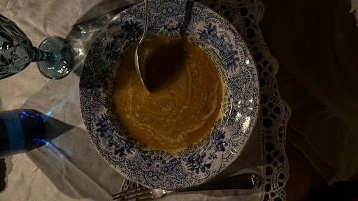Lo más decepcionante, sin embargo, fue la comida. Gran parte de la experiencia consiste en cenar a la luz de las velas mientras disfrutas de la música y el flamenco. Lamentablemente, la calidad de la carne lo arruinó. El tartar de esa noche estaba lleno de nervios, casi imposible de masticar; la mayor parte se quedó en el plato, aunque el aliño era sabroso y la presentación bonita. El puré con carne de res estofada tampoco convenció: la carne estaba dura, fibrosa y me recordó más a la comida del comedor escolar que a una cena especial. El único plato que gustó de verdad a todos en la mesa fue la sopa.
