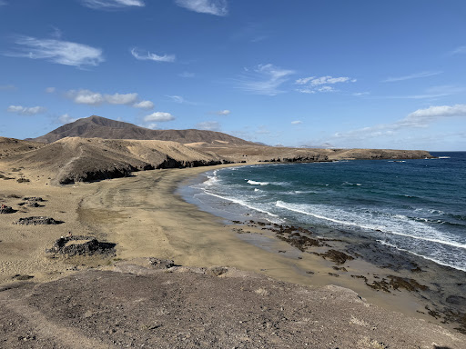 Read moreAfter paying 3 Euros to enter the Papagayo beaches area, follow the sign for Playa Caleta del Congrio. We parked where there's a (now closed) area for caravan campers. The first beach is Playa Muelas. If you walk to the right (facing the sea) you'll follow a path up and down some hills about 10 minutes to Playa Caleta del Congrio. It's a trek over and down, but worth it for a quiet, clothing-optional, gay friendly beach. Clear water, golden sand, and you can venture pretty far out into the water without it getting too deep. Not rocky, no seaweed. Although there are no services (bar, restrooms, etc. so take your own food and water), it's way better than the more crowded Papagayo beaches around...