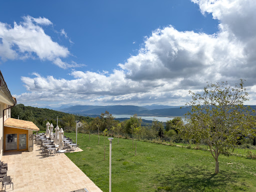 A small cafe with food, with a terrace with nice views.