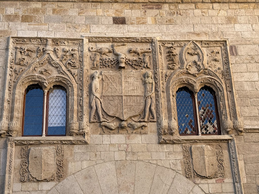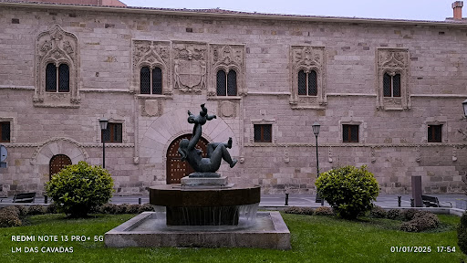 Read moreCasa de los Momos o Palacio de los Sanabria (ss. XV-XVI), en la calle de San Torcuato de Zamora. Según proyecto ecléctico típico del s. XV entre gótico isabelino, gótico flamígero y renacentista para don Pedro Rodríguez de Ledesma, comendador de Peñausende (Zamora) de la orden de Santiago y regidor de Zamora y casado con doña Marina Herrera, instituyendo aquí mayorazgo en 1495. Luego fue mesón y casa de arrieros, ocupándolo hoy la Audiencia Provincial, máximo órgano judicial de la provincia de Zamora. De la primigenia construcción se conserva la fachada principal -buena parte del palacio se derrumbó en el reinado del rey Carlos II de España (1665-1700). Asimétrico, tiene 2 plantas, concentrándose la profusión decorativa característica isabelina en el planta noble o superior. Escudo cuartelado con las armas de los linajes Sanabria -que son las de los Rodríguez de Ledesma-, Velasco, García de Herrera y Enríquez, que son los apellidos del matrimonio fundador, sustentado por dos enjutos salvajes, hombre y mujer. Pero ¿qué son y dónde está los momos? Los momos serían extraños personajes, danzantes disfrazados como hombres peludos o monos ó enmascarados como divinidades griegas de la burla, el sarcasmo y la locura, que ejecutaban bailes burlescos de moda en España en los ss. XV-XVI, que aquí serían las máscaras erosionadas pendientes de las cadenas. Ventanas de doble arco con esbelta columnilla y profusa decoración con motivos vegetales, pomos, bolas, veneras, cabezas de león, dragones y otros...