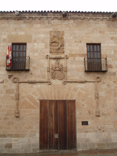 Read moreEdificio que se caracteriza por ser uno de los pocos ejemplos de arquitectura señorial civil de la ciudad de Zamora del siglo XVI. Se conserva la fachada y la vieja escalera barroca. El Palacio fue alzado porcJuan Arias Dávila, nombrado conde de Puñonrostro y marqués de Maenza por Carlos I en 1523. En su fachada destacar la portada con un arco de medio punto hecho con dovelas de amplias dimensiones que posteriormente fueron recortadas para acoger un vano adintelado. La portada está decorada con el cordón franciscano, y acoge el escudo de armas de los Puñonrostro y sobre él, el de los marqueses de Maenza. En la esquina de la fachada se encuentra una ventana ajimezada. En el remate de la cornisa se encuentran Venegas y gargoras zoomorfas con las que se rompe la sobriedad compositiva del conjunto. Forma parte, junto con al Iglesia de Santa Lucía, del...