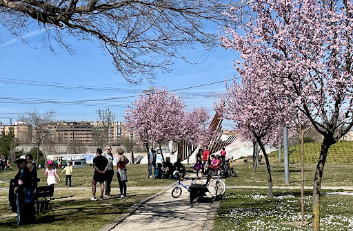 Alejado de la ciudad sparte de lugares especiales para picnic y juegos y algunas esculturas peculiares es un manso de paz donde sé puedes escuchar en silencio el canto de los pajaros parecido a una silla isla caribeña Tambien tiene un pequeño bosque lleno de verde entre cuales ortigas y un mirador SOBRE el RIO GALLEGO en la confluencia con el RIO EBRO. Hay tambien carril bici y un paseo de madera...