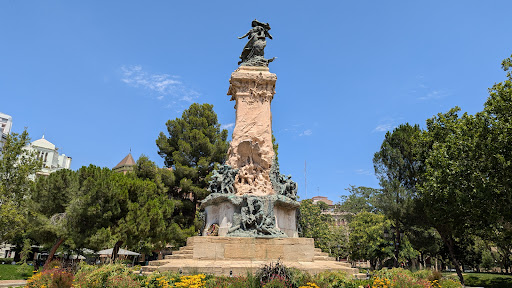 Read moreEn la plaza hay un epígrafe que explica la historia del lugar: Sobre los fértiles terrenos de las huertas conventuales de Santa Eugenia, Santa Catalina y Jerusalén se dispuso la ampliación de la ciudad en la última década del siglo XIX. Coincidió con los preparativos de la Exposición Hispano-Francesa, que conmemoró en 1908 el centenario de los Sitios. Se articuló un espacio en función de las necesidades de la Exposición, con pabellones desmontables y otros edificios destinados a perdurar: el Palacio de las Artes, De Ricardo Magdalena y Julio Bravo, actual Museo de Zaragoza, con secciones de arqueología y Bellas Artes, en la que destaca la sala destinada a Goya; la Escuela de Artes y Oficios Artísticos, obra de Félix Navarro; y La Caridad, de Magdalena, edificio destinado en origen a la exhibición de productos industriales y arte contemporáneo, pasando a ser institución benéfica en 1910. En 1919 se inauguró el Grupo Escolar Gascón y Marín de José Yarza, con un característico chaflán elíptico decorado con motivos neorrenacentistas. En el centro de la plaza se levantó el Monumento a los Sitios de Zaragoza, de Agustín Querol, de diseño modernista, con representación de personajes y escenas relacionadas con la defensa de Zaragoza y rematado por la figura alegórica de la ciudad. En un extremo de la plaza estuvo el Quiosco de la Música, obra de José y Manuel Martínez de Ubago, ubicado actualmente en el parque...