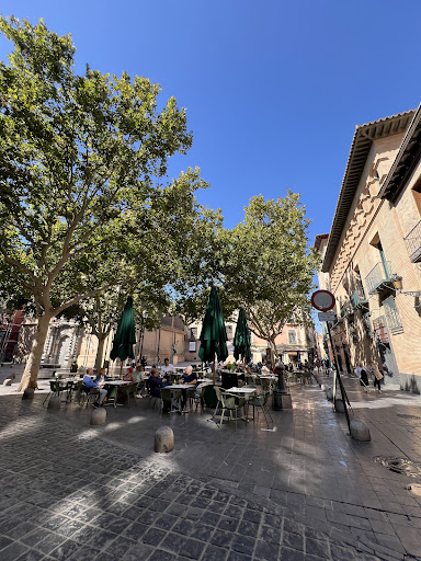 La plaza es un espacio amplio y arbolado que ofrece una agradable sombra, lo que la convierte en un rincón perfecto para relajarse. Varios restaurantes y cafeterías con terrazas te permiten disfrutar de un ambiente tranquilo mientras tomas algo y contemplas el entorno.