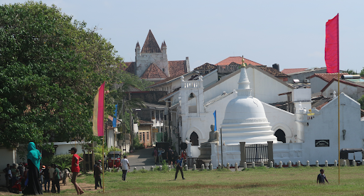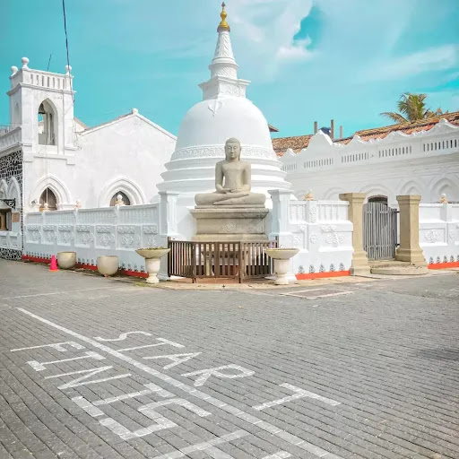 The Sudharmalaya Temple is a Buddhist temple situated within the Galle Fort, which is one of Sri Lanka’s five UNESCO world heritage sites. It sits at the heart of the fort’s main western street (called Rampart Street) opposite the Clippenberg Bastion. A statue of a sitting Buddha outside the small white-painted temple faces the sea over the bastion. Inside, the Sudharmalaya Temple contains a prayer hall, a mini stupa that dates as far back as 1889, a large statue of a reclining Lord Buddha as well as several smaller statues. There is also a small belfry atop the temple’s prayer hall, which may indicate that the building was once used as a church. Today, in addition to the temple’s regular activities, yoga classes are conducted within the temple’s prayer hall. The Galle Fort is home to a multi-faith community that live together in harmony, and the temple is one of the three major religious buildings that cater to them, the others being a mosque and a church. More than half of the population are Muslims, who attend the Meeran Mosque located at the end of Rampart Street, opposite the Galle Lighthouse. Meanwhile, a five-minute walk from the temple, the Groote Kerk (or Dutch Reformed Church) caters to the percentage of the population who follow the Christian faith. Ban Ki-moon, former Secretary-General of the UN, visited the Galle Fort in 2016 and sat with the local religious leaders; he was said to have been very impressed with the peaceful nature of the interfaith community who...