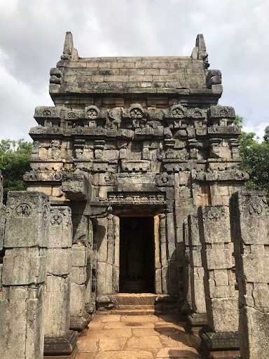 Nalanda Gedige is a curious hybrid of Buddhist and Hindu architecture. Some of the design elements are distinctly Hindu, such as the mandapam or hall of waiting. Yet there is no sign of Hindu gods. There are erotic but eroded Tantric Buddhist carvings, much like the famous ones at Khajuraho in India. The richly decorated façade sections are in the 7th century style which flourished at Madras, South India. However, the southern section has a semi-circular niche containing in high relief a squat figure of Kuvera, the god of wealth, seated on a lotus plinth - an image that is only found in Sri Lanka.