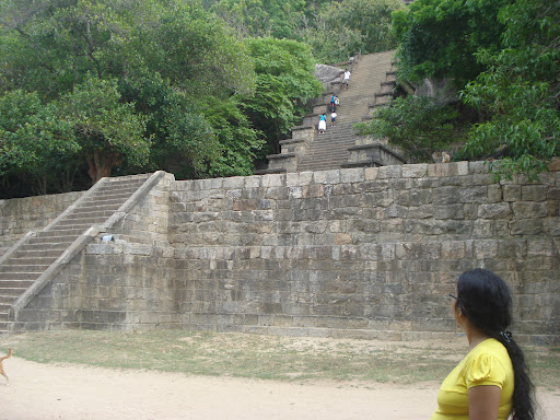 Majestic Stairway flanked by magnificent Carvings! My wife and I visited Yapahuwa on 5th January 2018, to see this ephemeral city that was the capital of Sri Lanka for a mere 12 years. Today, Yapahuwa is a unique location of historic splendour, with its majestic rock carvings on either side of the stone stairway leading to what was the pavilion where the sacred tooth relic was kept. I wore good walking shoes and carried a sun-hat. We visited the site early morning to avoid the noon time heat and humidity. There is no entry fee for locals and residents while the foreigners are charged a 4 USD (Rs. 620) fee. King Buwanekabahu who inherited the kingdom in 1272AD established his capital at Yapahuwa and built this rock fortress not only to defend the Sinhalese kingdom from the Indian Army garrisoned at Polonnaruwa but also for his own safety. He also moved the Buddha’s sacred tooth relic and installed it in a building at the top of the rock to safeguard it from the enemy, for it was the belief that whoever had the tooth relic was the King. However, after Buwanekabahu’s untimely demise in 1284, South Indians captured Yapahuwa and took away the tooth relic to India. Thereafter Yapahuwa was largely abandoned but for some ascetic Buddhist monks. To complete the history, the tooth relic was recovered later by his successor after negotiations with the Indian King and brought back to Sri Lanka. We entered the protected compound through the south gate after passing the ticket counter. We went past the moat and a tall outer wall embankment in semi-circular pattern about 11 km long that encircled and safeguarded the city. At the end of the semicircle is the steep Yapahuwa rock itself. As I entered through the wide embankment of the fortress, I could not help being fascinated by the 100 metre tall rock that looms and abruptly rises above the surrounding plains. We walked along neatly kept grounds for about 150 metres to the inner wall within which was the king’s palace and what would have been his council rooms for the war cabinet. The highlight of the visit was the sprawling, majestic and imposing stairway leading to the sanctum of the sacred tooth. There are three flights of stairs. The damaged lowest stairway had been restored with concrete steps while the upper two stairways are the originals, built of stone. The first two staircases take you to a pavements of flat areas supported by retaining walls built of stone slabs. The second staircase is not only steep at about 70 degrees but also narrow making you place your feet sideways - presumably to make it difficult for the enemy to get a foothold on during an attack. Looking down from here I took a few photographs of the ruins of King Buwanekabahu’s palace, quite close to the bottom of the first staircase. The third stairway is awe inspiring in its beauty and breath-taking to look at. The steps are wider too. Unlike the other two staircases both sides of this one are ornately carved with various figures – young girls holding a pot to welcome you, the head and trunk of elephant and the famed Yapahuwa Lion which appeared in one of the currency notes. The sculpture displayed in these figures are amazing and spectacular. Crossing the doorway at the top of the staircase you enter the top plateau which again is supported by a retaining wall built of stone slabs. Here I gazed at the ruins of the pavilion of the sacred tooth. The columns in the doorway too are magnificently decorated. The view of the surroundings from here, from so high up, is breath-taking, miles and miles of forest and fields in all directions! Turn left and follow the path to the top of the rock. I went only half-way and did not attempt to climb this as it was far too steep for me. On the way back we visited the adjoining temple too dating back to the 13th century and situated just outside the innermost wall of the city. It was a tiring climb but very informative, awe inspiring...