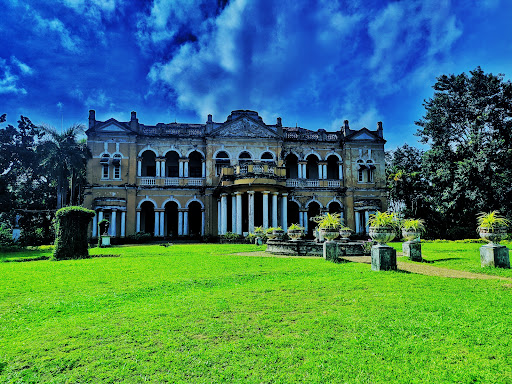 The wide staircase in the lobby is a typical rich English mansion affair, set upon checkered marble floors, with intermingling western and local patterns embedded in it. The bedrooms on the upper floor are soundproofed using some wonderful techniques that are now visible due to the aged lime covered walls peeling off like crisp paper. The lime maintained a comfortable temperature within the mansion interior throughout the year.