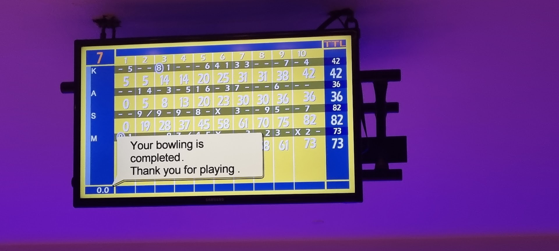 This place needs defenitely more organisation.. we were only 3 groups playing and they took 10 min to bring the drinks and we asked 3 times (as we almost finished playing), tables were mot cleaned. Some bowling balls were in bad state (finger holes) that can easely do injury… I’m sure with a bit of care this place can get easely better, you just need more attention.
