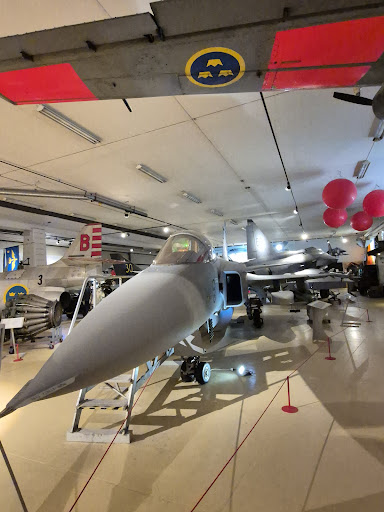 It's an interactive museum exhibiting about the fighter jets and sweden airforce. There were staff who were explaining details in swedish. And audios and videos are in swedish only. If the staff are free, they would certainly explain in detail in english. There are two small simulators for kids, and F 10 and drakon simulators for adults. Simulators for kids are limited for 5 minutes only. Kids enjoy it and want to extend it..we ended up giving 2 rounds of simulators.Kids who can watch and listen to the audio can easily spend 3-4 hrs to understand the fighter jets and how it all works. Lack of english audio translation and limited time for simulators is the drawback. Apart from this, it's a satisfying place to visit, amidst the dense trees and calm...
