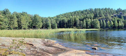 Sehr schöner kleiner Badestrand mit einem Pontonsteg. Wunderbar für Kinder. Toilette, Grillmöglichkeit und Kabine zum...