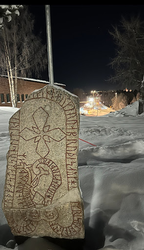 Un trozo de la historia vikinga del año 1000 al 1100 que se encuentra en la isla de Froson de muy facil acceso .Es posible cruzar en vehículo o a pie por puente peatonal desde Ostersun por sobre el lago Storsjon en Suecia. La piedra runica a diferencia de otras que señalan la muerte de alguien ,narra la construcción de un puente sobre el lago dice más o menos así" Austmador ha colocado está piedra y construido este puente y cristianizado. Jamtland. Asbjorun construyó el puente .Trjonn y Stein grabaron estás runas" Lo interesante de esta runa es la que se encuentra más al norte de Escandinavia, más al sur en Noruega y Suecia existen una buena cantidad. La piedra fuera de la inscripción runica muestra en su parte superior un símbolo cristiano demostrando la llegada del cristianismo a la zona . Más abajo aparece una gran serpiente marina o dragón marino que habitaba en el lago llamada Storsjoodjupet o mounstro del lago o serpiente del lago que ha hecho sus apariciones a través del tiempo como el del lago Ness. Está serpiente era muy grande y narran que rodeaba toda la isla de Froson y su cabeza de perro se unia con su cola . Ese es el símbolo de Ostersun. La piedra nos muestra la historia de Jamtland cuando llega del cristianismo y la leyenda de la serpiente del lago. Historia plasmada en piedra el año 1000 o 1100 por unos Vikingos . Si va camino a Are pase a ver este trozo de historia en la...