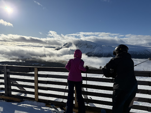 Fin natur med mycket snö. Åkte ner med hela benet och behövde hjälp upp, det var kul. Såg ut som en trevlig skidbacke med bra shop. Men min pungkula vred sig och kunde inte sova, fick åka på akuten...
