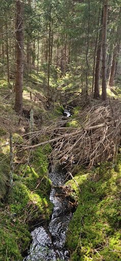 After you reach the highest peak you are going downhill through a stunning forest of spruce (fir) trees on a floor of moss. The trail then continues through forests and open landscapes until you reach the mines (Hornbackskullen) and then it's an easier path towards the end of the trail.