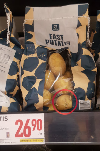 Willys anspelar på att vara en lågpriskedja, men det är en sanning med modifikation, för en hel del produkter är INTE lågpris. LÅGPRIS (billigt) innebär att en vara håller, i sammanhanget, vedertagen kvalitet, men till ett lägre pris. Inget annat. Potatis för över 13 kr kilot är inte lågpris. Det är ett högt pris. Särskilt om man väger in att det hunnit växa ut en hel del groddar på dem (m.a.o. gamla). Samma dag (30 dec), kunde man i Göteborg köpa potatis med god kvalitet för cirka 9 kr kilot. Willys prissättning utgör, i det fallet, en invertering; dålig kvalitet och 50 % högre pris. Övriga potatissorter var också undermåliga, bl.a. alltför mjuka.