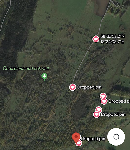 Read moreBra, men Bratteforsfallet på 58°33'17.3"N 13°23'55.9"E är nog än mer spektakulärt! Vägen till Bratteforsfallet: Ställ bilen vid övre "hjärtat" (https://goo.gl/maps/QWsxAj6uZF1ZjFKJ7), följ de andra hjärtana till det nedre hjärtat (se min bild). Gå söder över från parkeringen, förbi bommen, tills blåa leden korsar vägen ni går på och ta nu istället öster på blåa leden tills ni når en övergiven ladugård. Gå sydväst på en alle/väg och förbi ett torp. Finn en stålstolpe (https://goo.gl/maps/u4MXhwYaYUTQZKY86) cirka 40 meter väster om grinden/muren som omger torpet. Gå sydväst från stolpen över det öppna landskapet och följ de sporadiska stenplattorna i marken. Fallet borde sedan höras efter några minuters promenad (https://goo.gl/maps/UWqLVr3o9Swyie9h7).