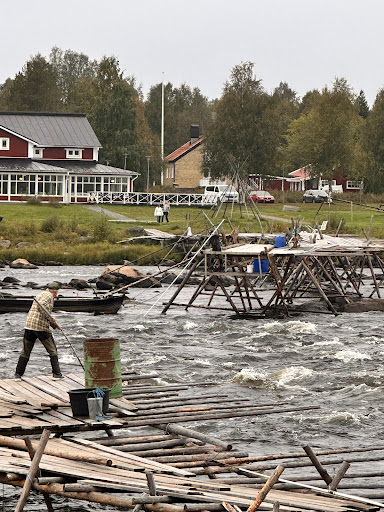 The scenery is very beautiful. The history of this rapid part of the river is amazing, visit it and read the information boards to get a deeper understanding. The salmon (lax) and whitefish (sik) are fighting their way upstream to mate, resting in holes of still water during their journey upstream.The Finnish and Swedish got together as one village to make the best of the fishing, knowing the holes where the fish rests and heaving them up in dozens in one single catch. The river is the frontier but the villages are one. There is a restaurant, cabins, saunas and places to tent. On both sides, Swedish...