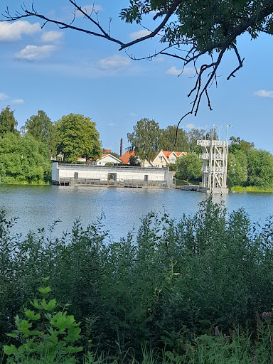 Kul hopptorn! Men riv läktaren och gör en bättre badstrand för barn så kan hela familjen trivas där! Se upp lite på bryggan för en del brädor är...