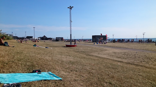 Public beach and green area with several kiosks resturanst and public barbecue pree made pits so you don't have to bring your own portabel barbecue or disposable one. The area is ower 2 km long with sand beach in the north and a harbourh like shorefront i the south with a long grass lanw the whole way from south to north , a lot of events happen here and a lot of details is the designed to remind you of other famous waterfronts, you have beach volleyball large chees and a lot more, freshwater showers and now and then you can see the regional trains and Gotenborg trains pulling into an undeground tunnel for the...