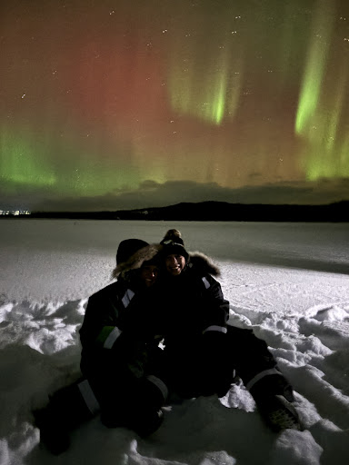 On our first night, we did the Aurora Colleseum dinner tour. We went before the igloo was finished being built, so we did do a quick lesson on auroras with a fire and warm lingonberry juice in it, but we had our delicious moose meatball meal inside a warm cabin. We got very lucky and had an absolutely amazing show of the lights. Dave and Mattias were so knowledgeable and helpful in capturing the best pictures!!