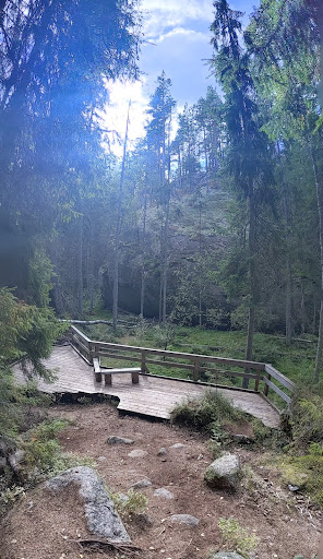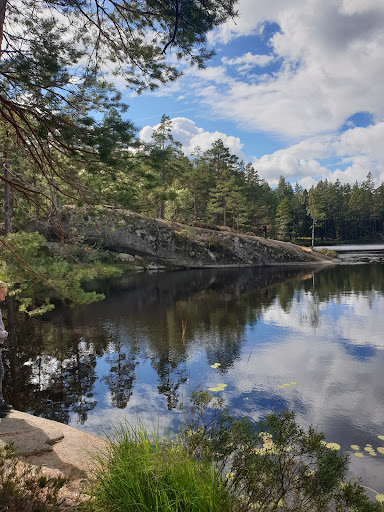 Här kan det börja en mycket trevlig vandring för dig/ er. Det finns många leder att välja på. Du väljer efter ditt humör. Var beredd på att det är mycket upp och ner på vissa leder. Vad du än väljer så ta dig tid att njuta av naturen runt om kring. Stanna gärna upp och lyssna...