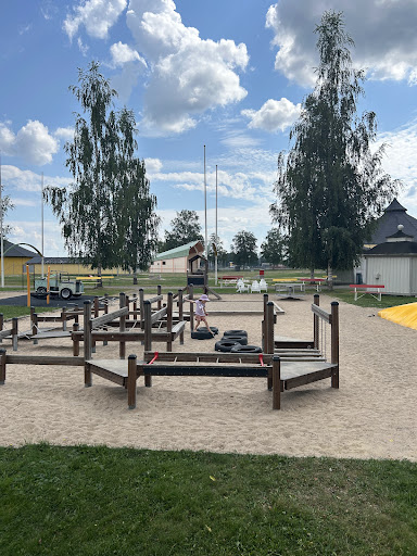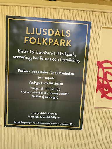 Finns rutschkanonor Gungor ej babygunga Klätter/balansbana i träd Gunghästar, gungbräda Gungande bil Snurra Stor hoppstuddsyta Sandbäddar där man kan gräva. Stora fina grönytor för spring Kiosk och resturang som är öppet mitt på dagen ca 11-15 Ljusdalforngård och campingområdet vid sidan av där det finns toaletter. Det som saknas skulle vara en bassäng eller plaskdamm för varma dagar. Mycket varmt i parken mitt på dagen vid ca...