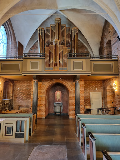 In the Cloister church, there still is signs from the time when the church was part of a monastery. In the ground walls, there are natural stones which were part of the first cloister church from the 12th century. Inside the walls, there are reminding’s from the gallery, which was the nuns’ placement in the church, while the people had their seats below. In the north-west corner, there is two built-in sections left from the cross walk, which was surrounded the whole garden. High up the north wall there is a gallery on which the cloister prioress had her place.