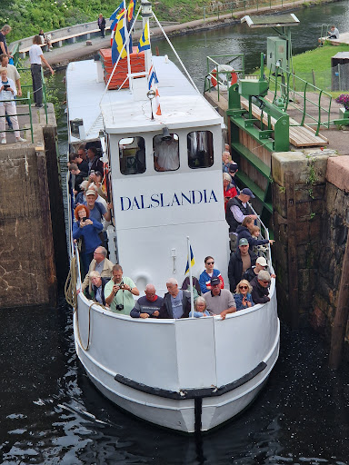 Åkte kanalbåten från Håverud till Bengtsfors, var inte någon angenäm resa. Det hade varit en fin tripp om de inte packat ihop 100 personer på båten, hade räckt med 50 personer och ändå haft 2 sittningar för lunch, vi var som packade sillar på båten. Så blir det om man försöker tjäna så mycket pengar som möjligt utan att tänka på passagerarna. Men måste ge en eloge till personalen (ungdomarna) som var mycket bra, glada, trevliga och serviceinriktade. Området runtomkring riktigt bra med restaurang, brasseri, laxeri, glasseri, antikbutik och pub. Väl värt att besöka men hoppa över kanalbåten. Titta på bilden nedan så ser ni hur trångt det är på båten. Ta gärna in på campingen bredvid den är mycket bra och gå runt i området...