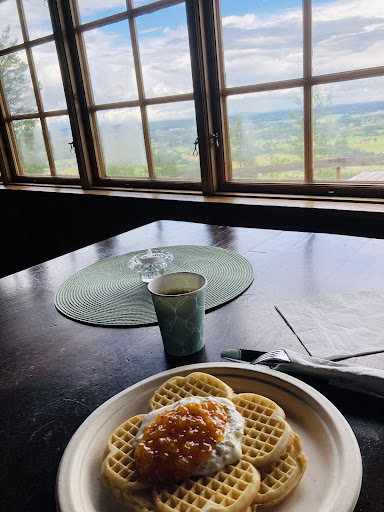 Read moreGoda våfflor med grädde och hjortronsylt eller annan sylt. Smakar underbart, dessutom med sprakande brasa i stugan. Utsikten är superb vid klart väder. Dessutom fick mina små hundar följa med in när jag fikade - en sjätte...