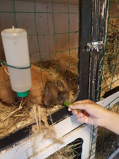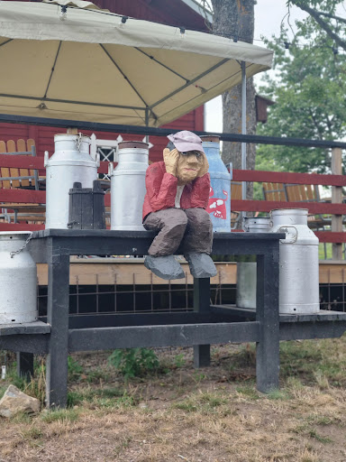 Besökte egentligen för att kasta discgolf men passade på att låna toaletten och titta på hönsen och kaninen. Man kan köpa glass mm, idag fanns en lapp om att man får ringa till ägarna först, oklart om det alltid är så, för att dom ej var i "caféet" just då.