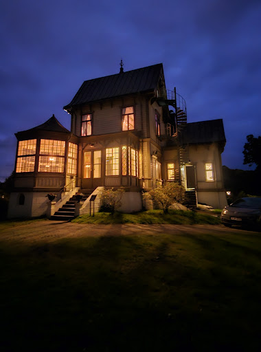 Väldigt trevlig och mysig miljö. Sittplatser för ca 16 pers för att äta om man flyttar in ett extra bord. Ovanvåningen är lite tråkig då de flesta möblerna är gamla skolmöbler från 90talet eller något liknande. Men överlag är det...