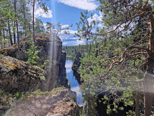 JÀtte fint utflyktsmÄl. Det Àr en bit att gÄ i blandad terrÀng, sÄ har en svÄrt att gÄ Àr det inget stÀlle att rekommendera, men om en tar sig fram trots sten, rötter, spÄngar osv sÄ Àr detta utflyktsmÄl för dig. Har du smÄ barn med lite förstÄnd gÀller det dock att hÄlla ett vakande öga och en hand dÄ det Àr höga höjder man gÄr efter. Det Àr vacker utsikt ich vÀl framme sÄ finns vindskydd, eldstad och bord med bÀnk för att kunna Àta en bit mat eller fika. Jag har besökt detta tvÄ gÄnger, olika Ärstider och uppskattat det lika mycket...
