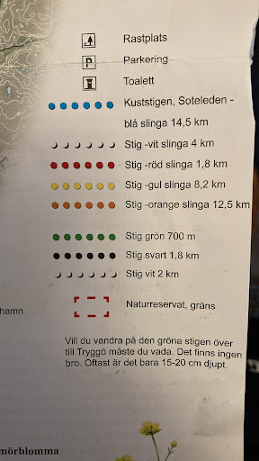 Read moreMånga leder att välja på. Underlaget är mestadels klippor i söder o väster och mer blandat på den östra sidan. Vi gick orange slinga (12,5 km). Stora delar lättvandrat, men också partier som är väl så knixiga, och som kräver både balans och stor rörlighet. Några p-platser finns innan bron. En större finns vid Haby plus ytterligare 3 p-platser till runt slingorna. En utmärkt karta finns vid brofästet bl.a. Fin skyltning längs slingorna kompletterar kartan bra. Underbar natur erbjuder mängder med rastplatsmöjligheter. Ett sista tips; ta till god tid i planeringen av vandringen. Inte många snabbvandrade partier, och många fritidsbåtar i Sotekanalen sommartid kräver...