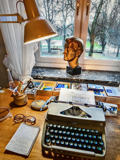 В работния кабинет,пред прозореца е било бюрото с пишещата машина.Тук са родени Пипи, Емил, Карлсон, Кале Бломквист и всички останали.Тук е създадено цялото творчество на Астрид Линдгрен.Историческо място!