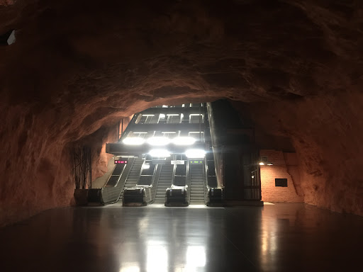Read moreThis station is carved into the natural bedrock, it features a raw, cavernous aesthetic with reddish-brown walls that resemble an underground cave. The lighting enhances the dramatic effect, making it feel like an art installation rather than just a transit hub. Despite its rugged appearance, the station is well-maintained, with clear signage and...
