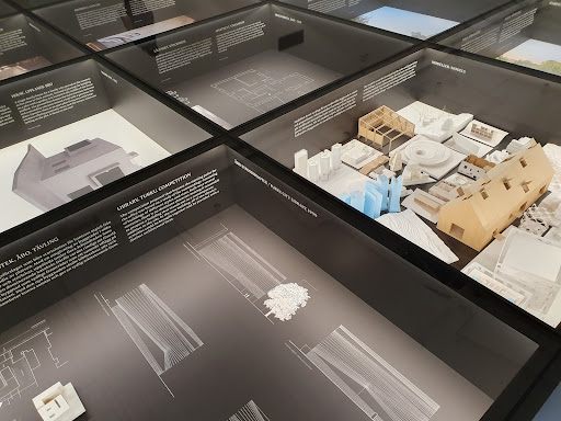 The main room with Swedish architecture is a bit disorganized, the drawers with materials under the models are not matching and belong to other seemingly random buildings so there is not that much information.
