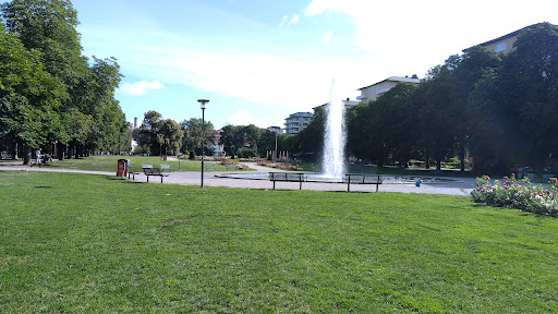 Tree-lined streets run on either side of the park: Hedinsgatan in the west and De Geersgatan...