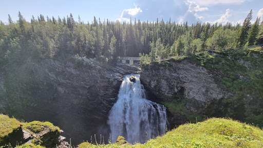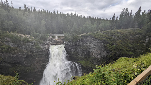 This was definitely one of my most favourite spots on Vildmarksvägen or even my whole Sweden Roadtrip. The view of the waterfall and it's descending canyon through pure wilderness is just magnificent. The waterfall itself can be accessed by car or with a camper very easily. There are actually two parking spots one right next to Hällingsåfallet about 1min walk away. The other one is located further down and has a beautiful trail along the canyon which (about a 2km walk to the waterfall). There is also a toilet which is free to use, next to the upper parking. Can't really say anything negative about this place, except maybe watch out for the mosquitoes. Definitely a must see If you are doing the...