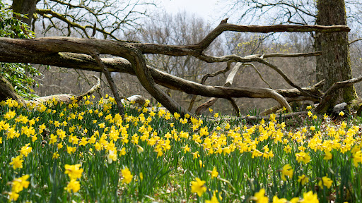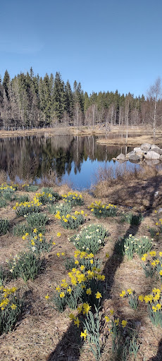 Fantastisk och unik plats!! Lökar av påsk- och pingstliljor, "spridda" rätt ut i befintlig natur = gallrad vuxenskog! De utslagna blommorna bildar så att säga, en tät färggrann "matta" mitt i naturen! Inga rabatter eller dylikt! Det finns också på denna f.d. bondgård, planterat alla arter av påsk- och pingstliljor i kvadratmeterstora fyrkanter, med skyltar, som anger namnet på respektive blomma! Allt, är sevärt och när det inte är covid 19-hemskheter, har msn också ett café, inrymt på ladugårdsbyggnadens ränne men även, med bord och...