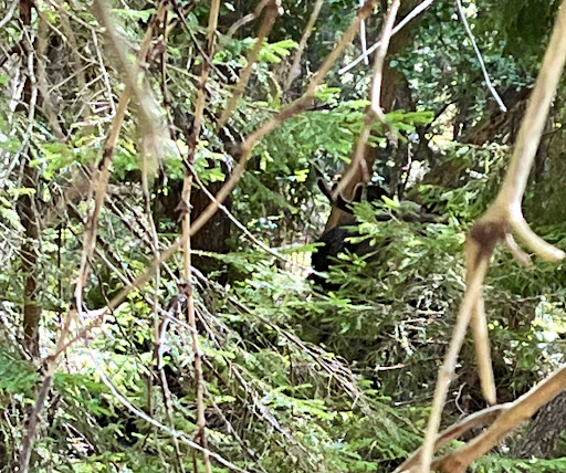 On the way south past Ällmora träsk we almost ran headfirst into a giant male moose! Great experience, the trail went south past a rock from where you could swim and jump in the water, and it was a bit difficult to find the path forward. Wild moose show...